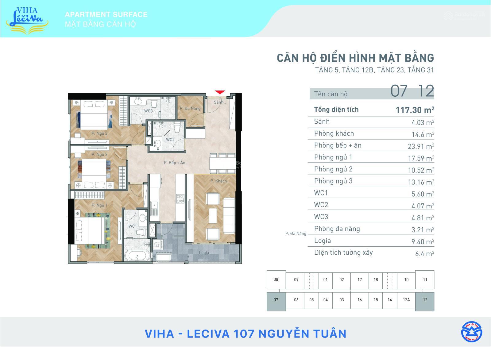 Duy nhất căn góc Đông Nam Đông Bắc 118m2 tại Viha Leciva 107 Nguyễn Tuân, căn hộ 1812 cần bán gấp