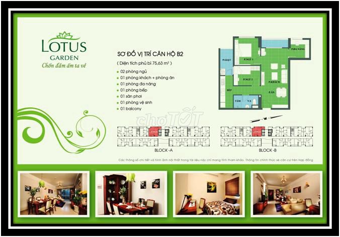 🎈🔥 HOT – CHÍNH CHỦ BÁN CĂN HỘ 2PN 2WC CHUNG CƯ LOTUS GARDEN SỔ HỒNG.