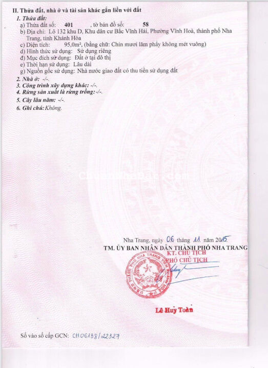 Bán đất KĐT Bắc Vĩnh Hải, Nha Trang DT: 100m2. Hướng đông, đường D3, giá: 34tr/m2, LH: 0931183878