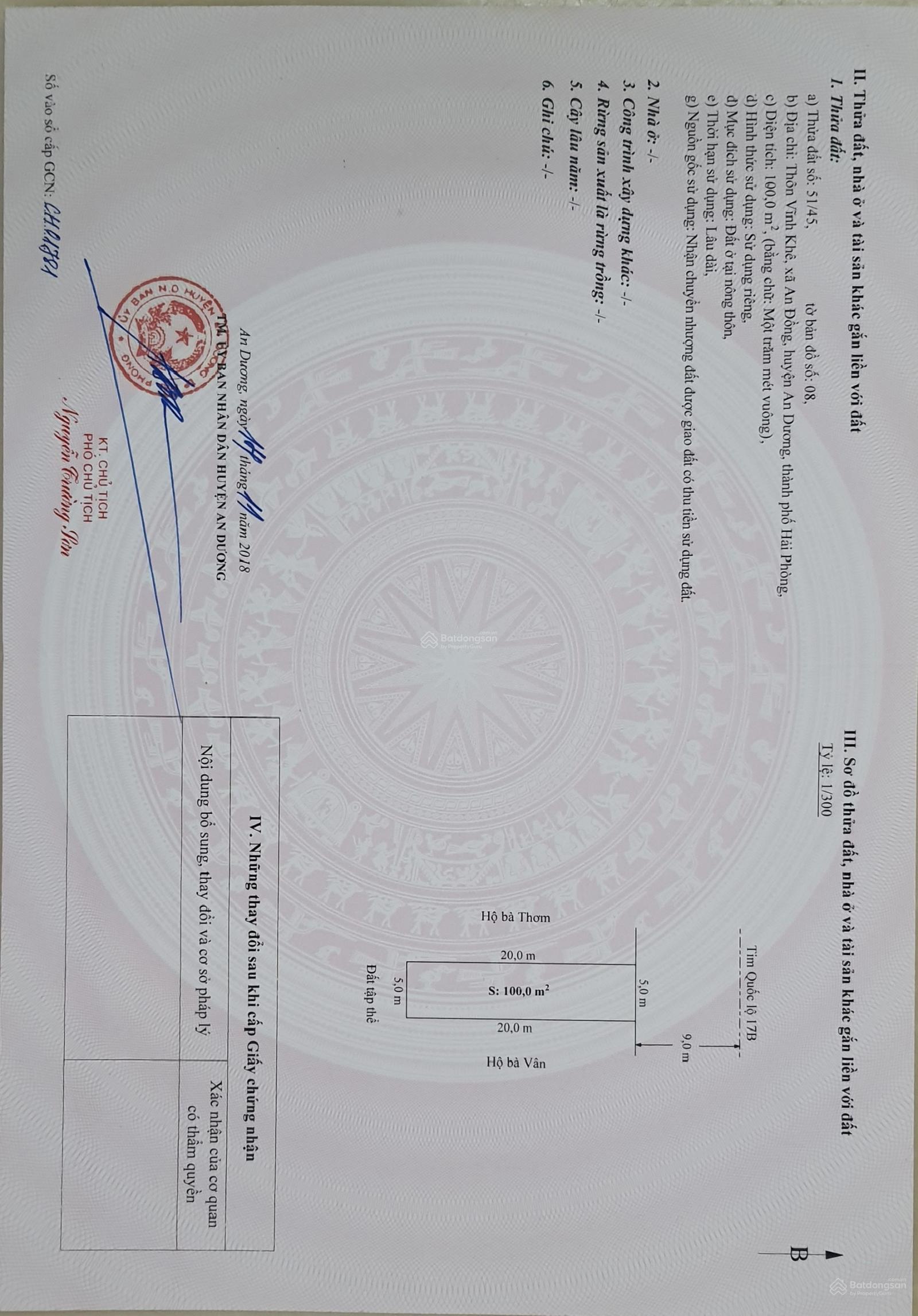 Chỉ 42/m2 đất 220m2 PG An Đồng, TDP Trang Quan, An Đồng, Hải Phòng