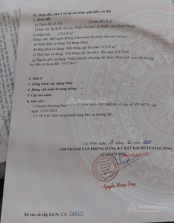 Bán đất tại K54 xã Lộc Thiện, Huyện Lộc Ninh, Bình Phước, 1 tỷ, 1013m2 giá ưu đãi uy tín