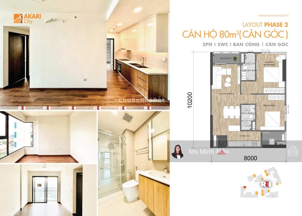 Cho thuê căn góc Akari City 80m2, 2PN ban công, full nội thất cơ bản, nhà mới 100%, dọn vào ở ngay