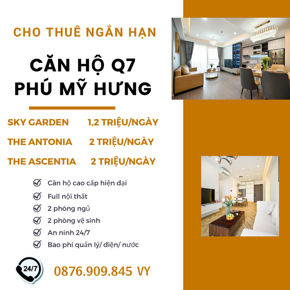 CHUYÊN CHO THUÊ NGẮN HẠN CÁC CĂN HỘ CAO CẤP THUỘC KHU ĐÔ THỊ PHÚ MỸ HƯNG Q7_Giá chỉ từ 1.2TR/ ngày