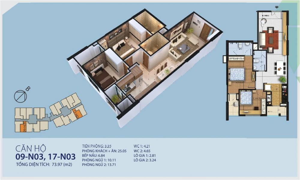 Bán căn S sổ đỏ = 75m2 tòa N03 2PN 2WC, giá 6.23tỷ