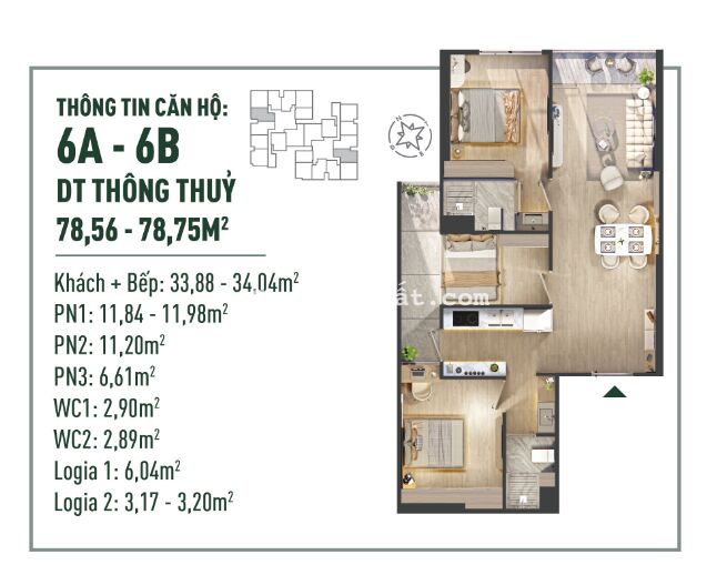 Bán căn 2 phòng ngủ 2vs diện tích 66,5m2 Trust City