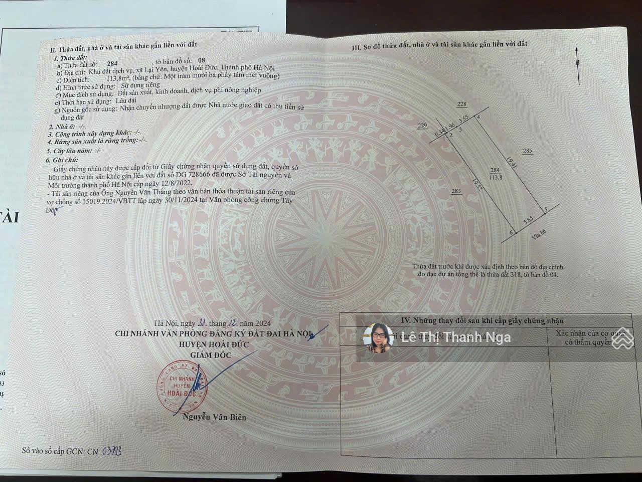 Bán gấp 50m² đất dịch vụ Song Phương đường rộng 10m hướng Đông Nam không lỗi gì mặt tiền 3.7m.