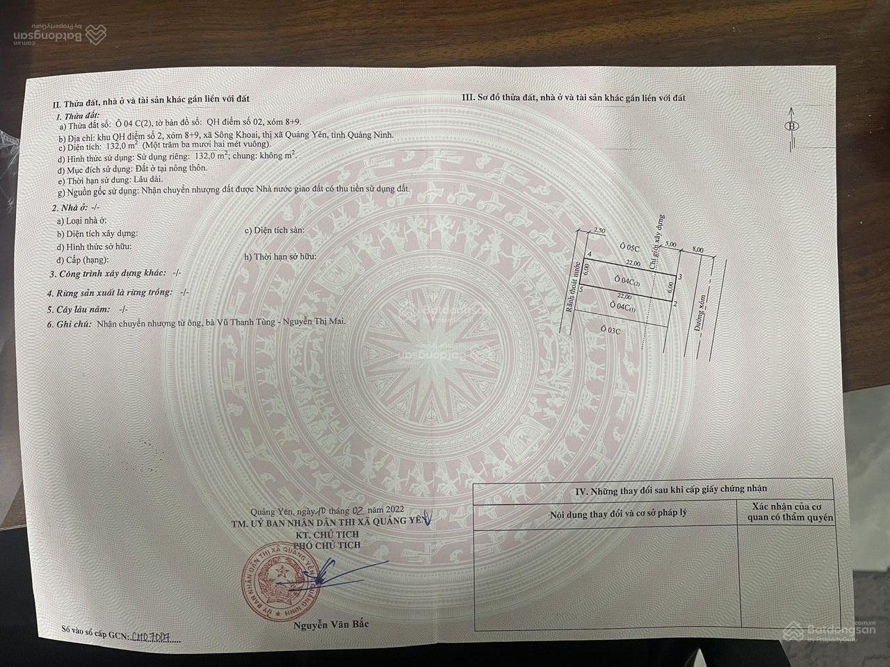 Diện tích 200m² mặt tiền 10m sâu 20m, thuộc đất đấu giá của thị xã Quảng Yên.