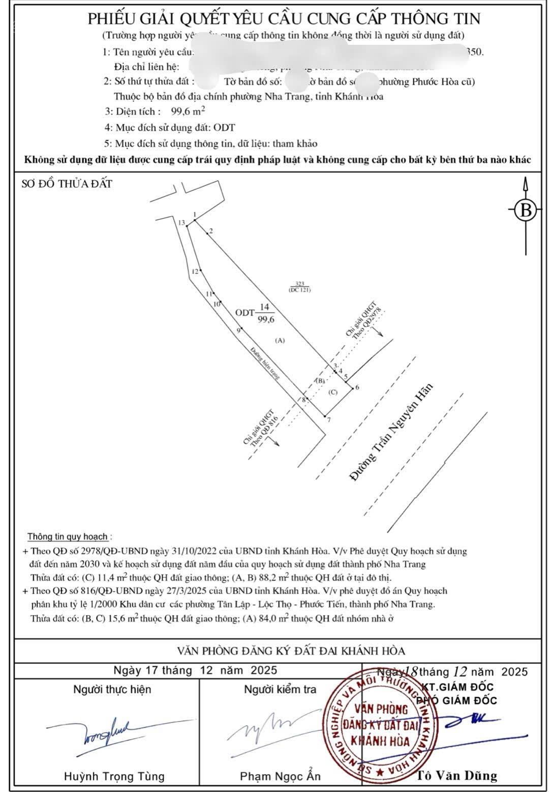 Bán lô đất đường Nguyễn Phúc Tần (đoạn nối đường Trường Sơn) phường Vĩnh Trường Nha Trang