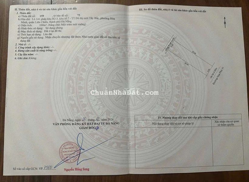Diện tích : 100 m2 . Ngang 5m