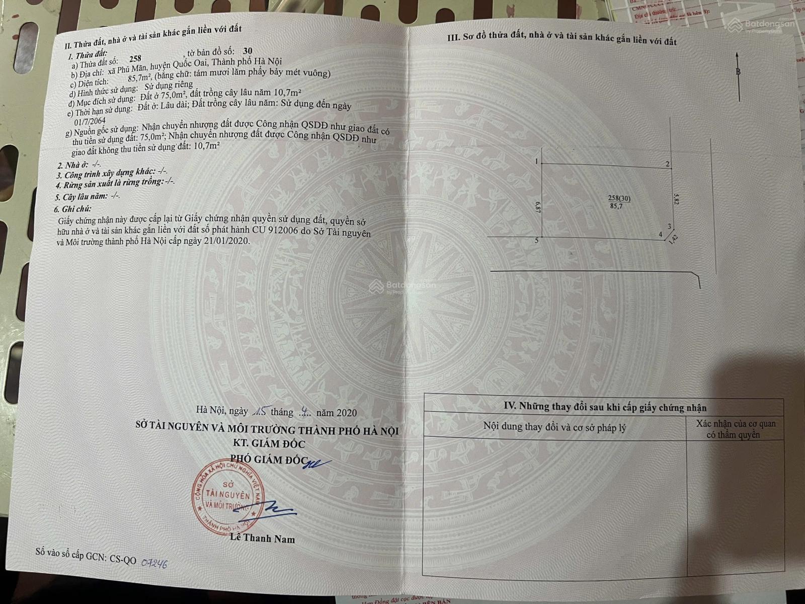 Quỹ đất mặt Quốc lộ đường Hồ Chí Minh, không có lô thứ hai.