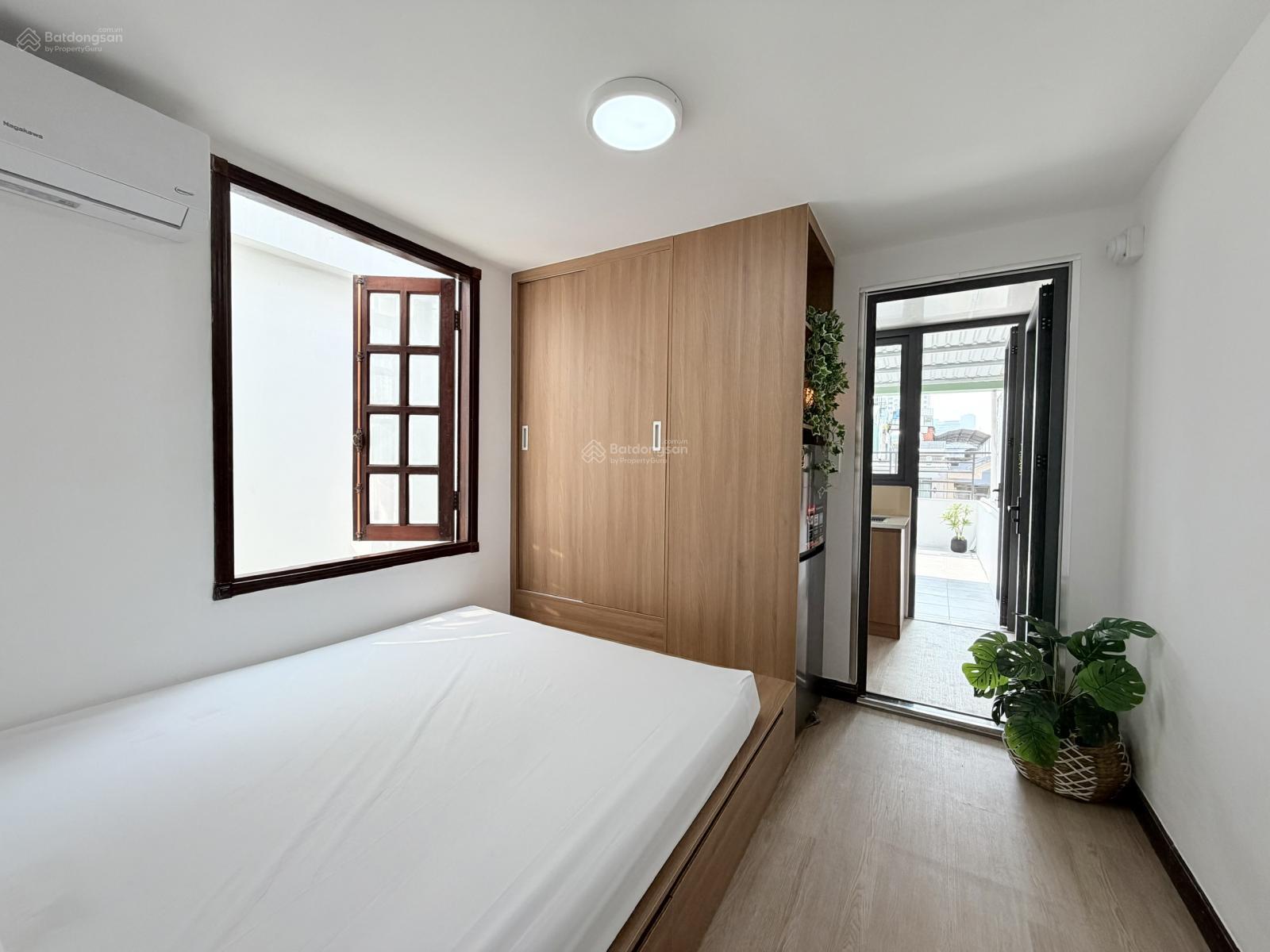 Căn hộ có 1PN và 1WC, được trang bị điều hòa, tủ lạnh, giường, mang đến sự tiện lợi cho cuộc sống hàng ngày. Giá cho thuê chỉ 7,5 triệu VND, phù hợp với nhu cầu của nhiều gia đình và đối tượng thuê khác nhau.