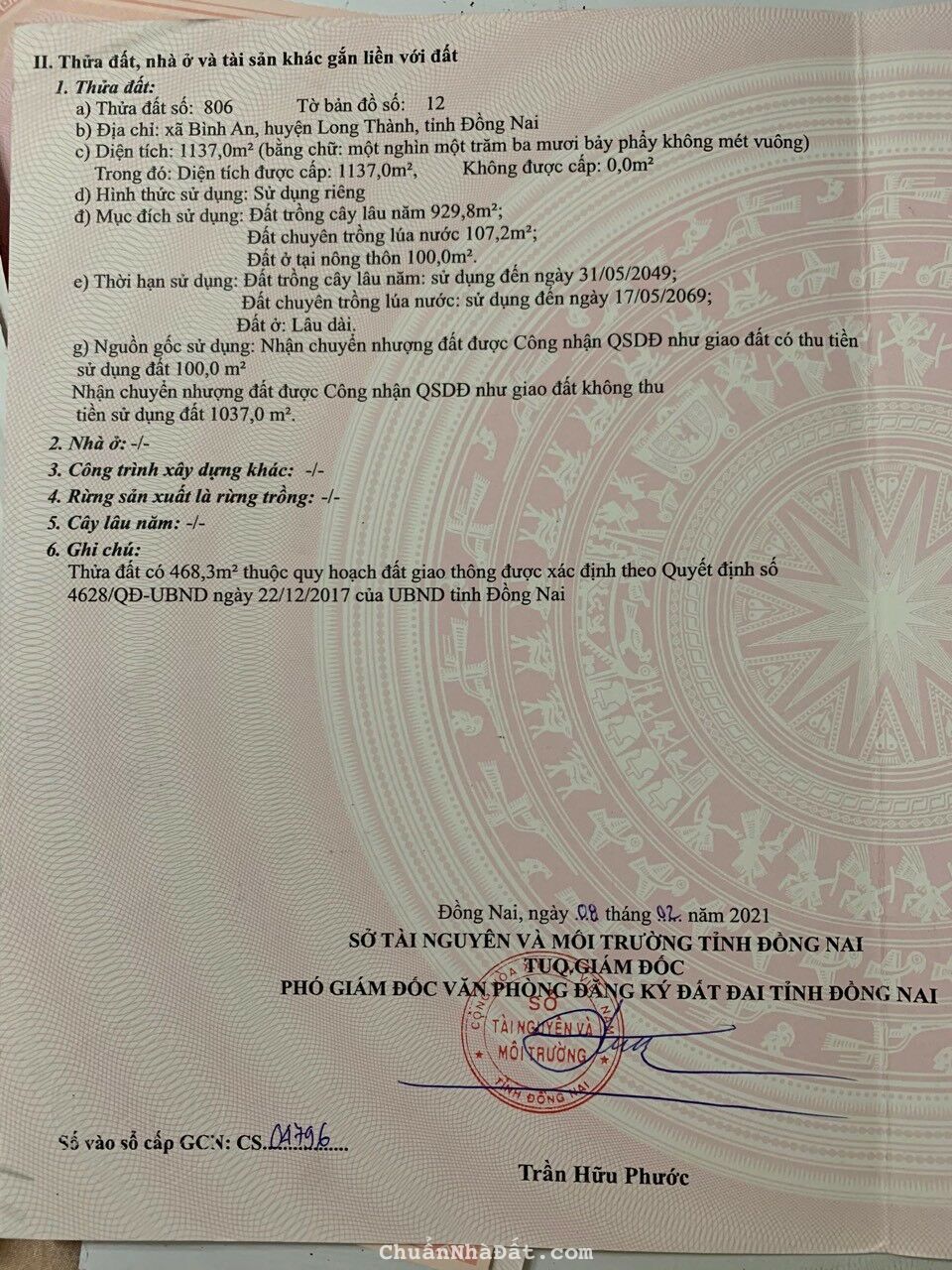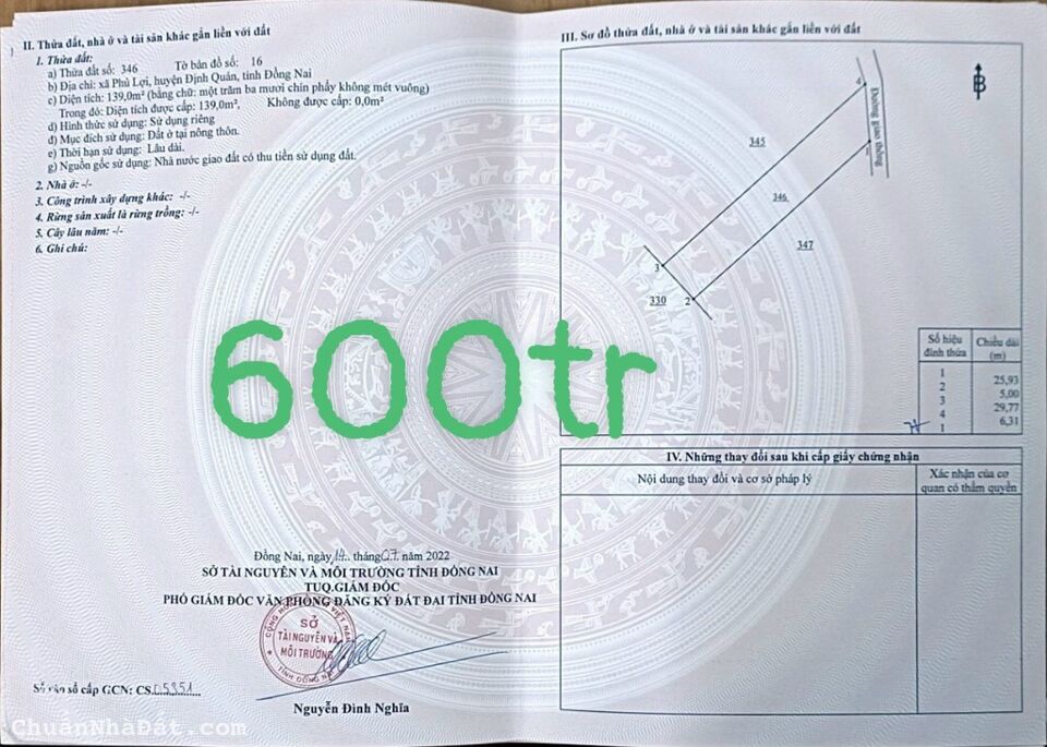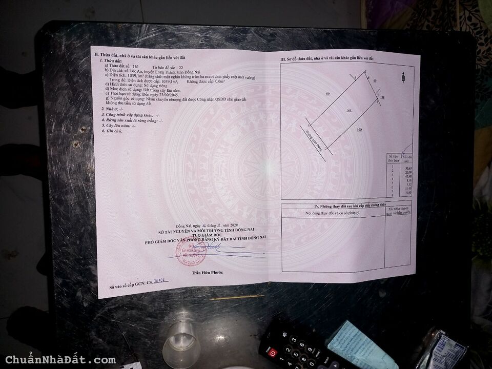 - Đất sổ riêng với diện tích: 1,500m2 ( 24,2m tiếp giáp mặt đường hiện hữu, nở hậu 26,5m phần tiếp giáp suối và hồ cầu mới x dài 68m) thuộc xã thừa đức, huyện cẩm mỹ, tỉnh đồng nai.