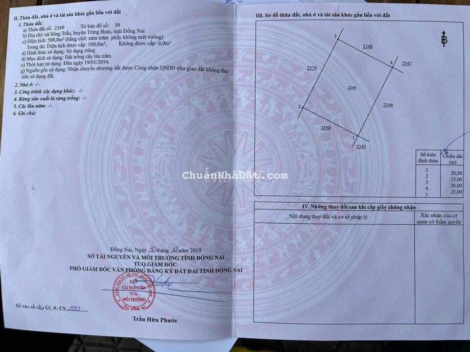 Đất sổ đỏ 90m2 thổ cư đường nhựa tại xã sông trầu trảng bom đồng nai