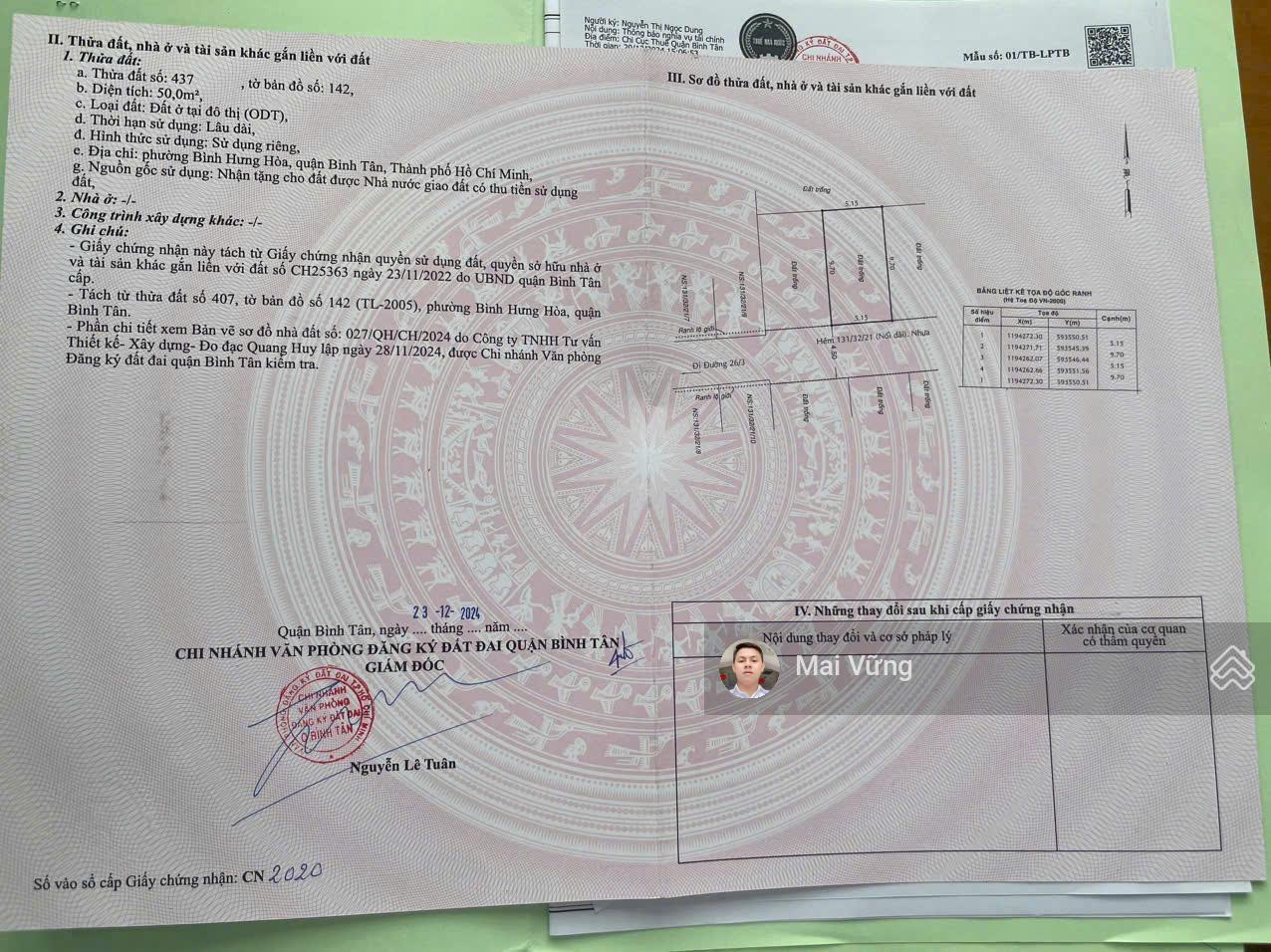 - Công nhận đủ: 605,1m² (thổ cư 100%).