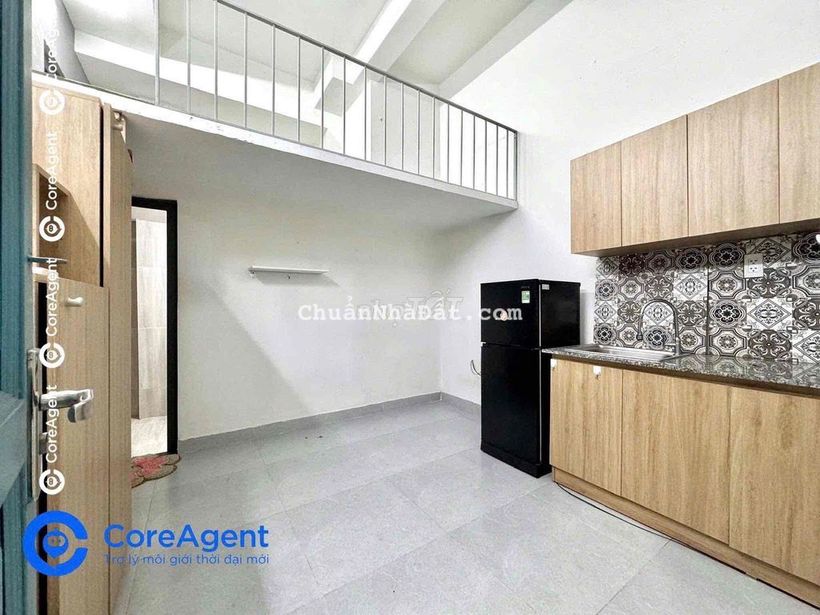 Nội thất: Máy lạnh, kệ bếp, tủ đồ tích hợp, giường.