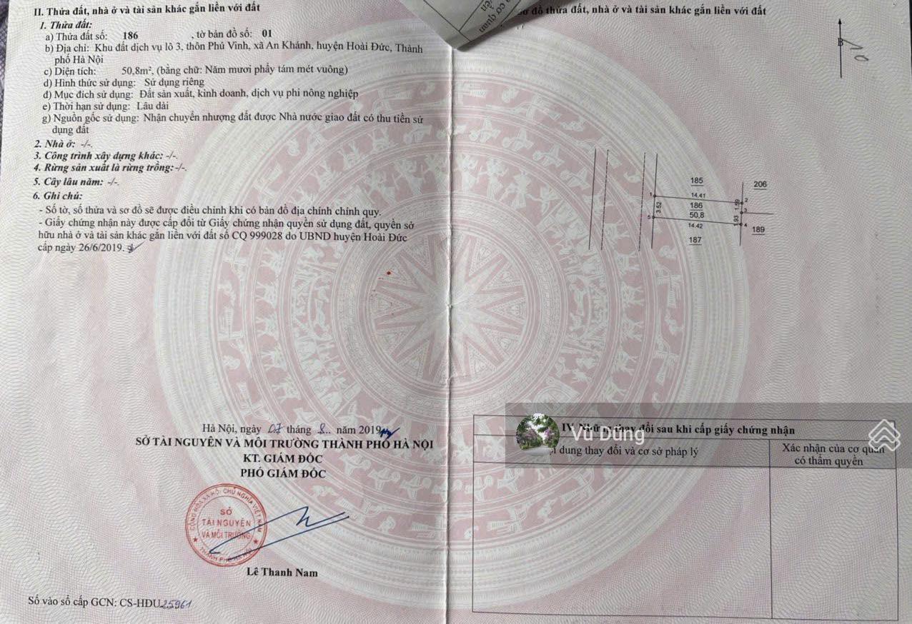 Bán đất dịch vụ Phú Vinh, Sơn Đồng, Hà Nội trước mặt vườn hoa, ô tô đỗ ngày đêm | 45m², MT 4,37m