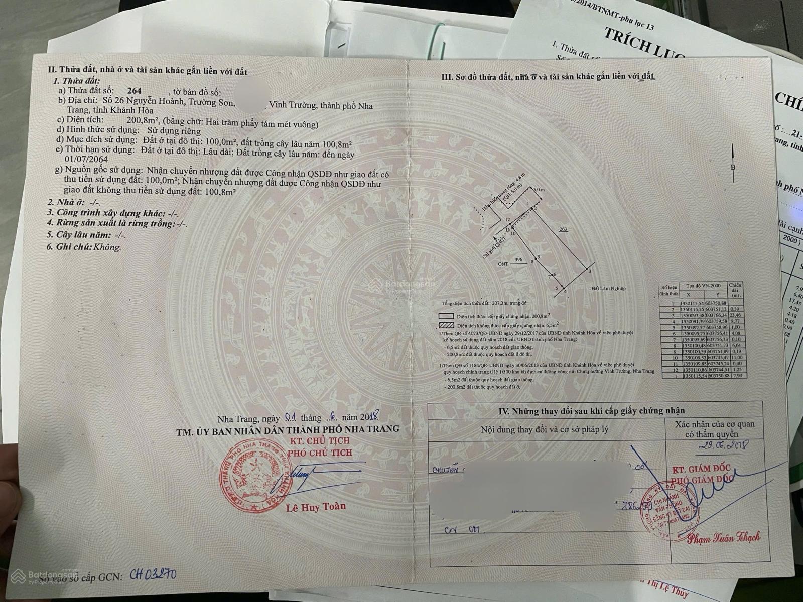 Bán lô đất thôn Võ Dõng xã Vĩnh Trung, Nha Trang