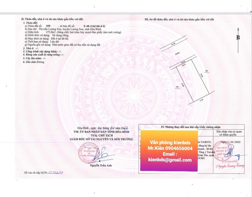 Bán lô đất biệt thự rộng và đẹp nhất dự án Riverview - Lương Sơn - Hòa Bình.