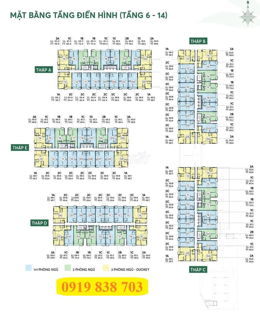 Cực sốc! Căn tháp Hybrid 63.4m2 giá gốc HD chiết khấu thêm 5%/ tổng giá