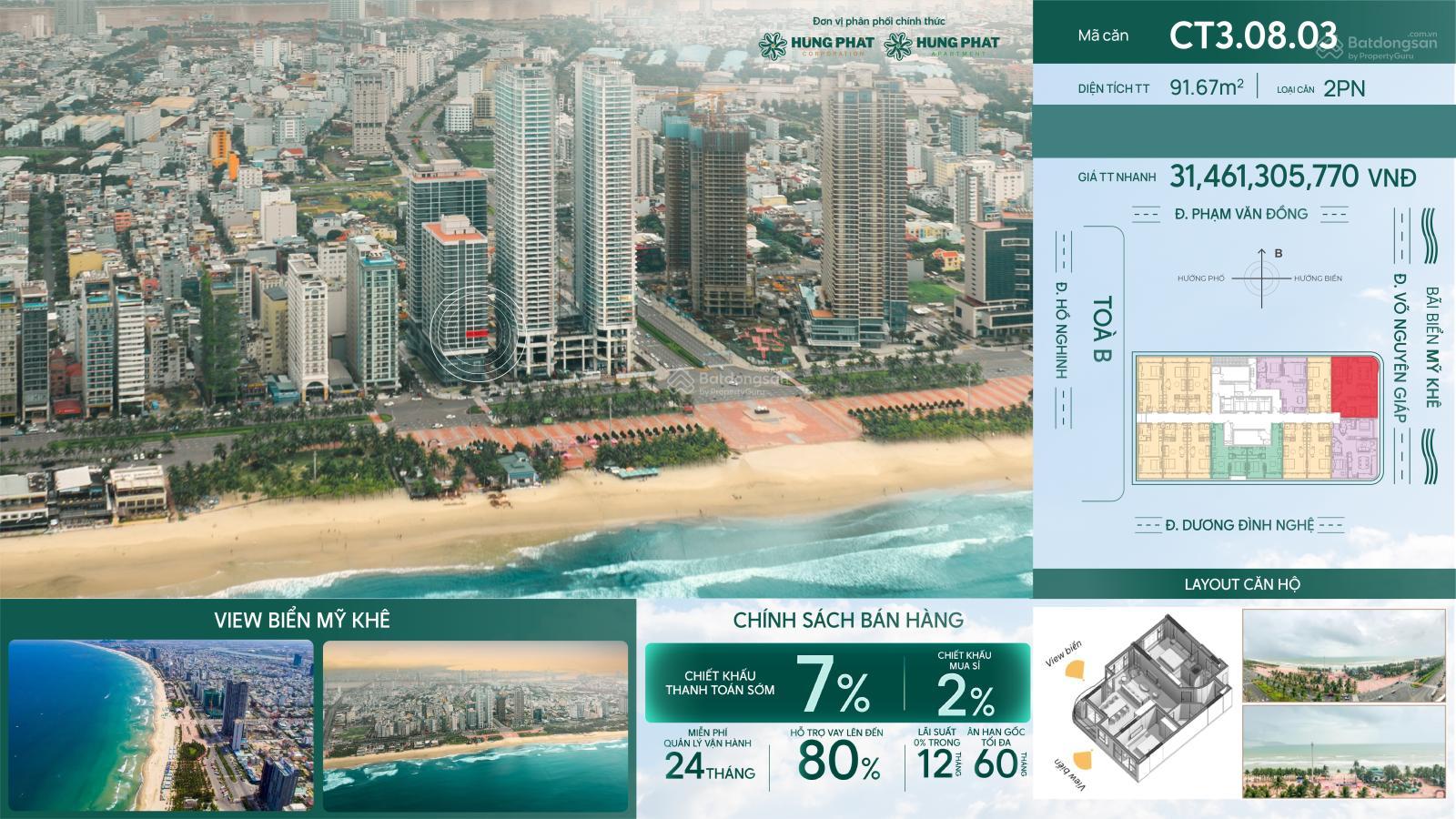 CĂN GÓC 2PN/ 91.67M2 VIEW TRỰC DIỆN BIỂN MỸ KHÊ ĐÀ NẴNG - TIME SQUARE