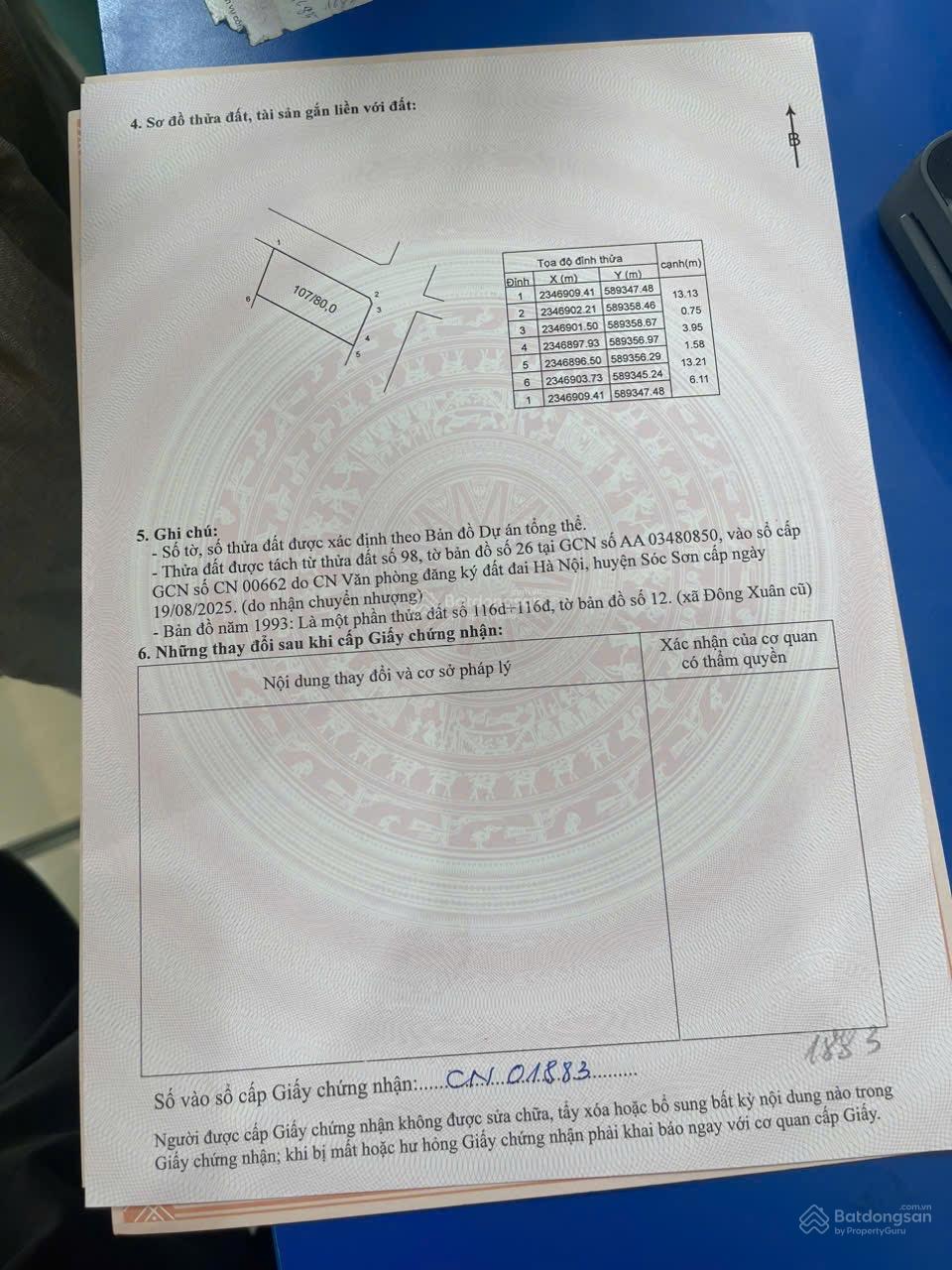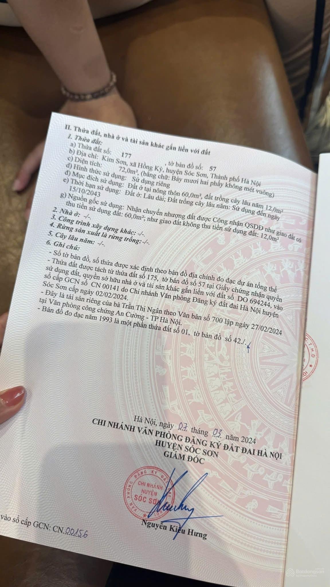 Đất thổ cư tại Xã Hồng Kỳ, Sóc Sơn, Hà Nội, 1,175 tỷ, 72m2, bao đẹp giá ưu đãi
