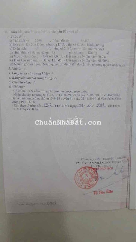 LÔ ĐẤT SHR NGAng 5,08m dt 74,6m2 P. Dĩ An TPHCM