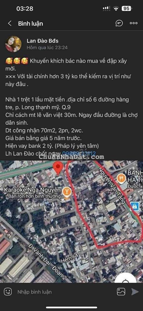 Nhà mt thụt đường Hàng tre, 70m2, p. Long thạnh mỹ, q.9
